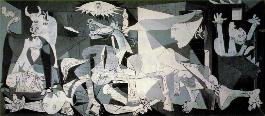 Guernica was begun by Picasso May 1, 1937 in response to the bombing of norther Spanish village by German and Italian warplanes at the behest of the Spanish Nationalist forces on 26 April 1937.